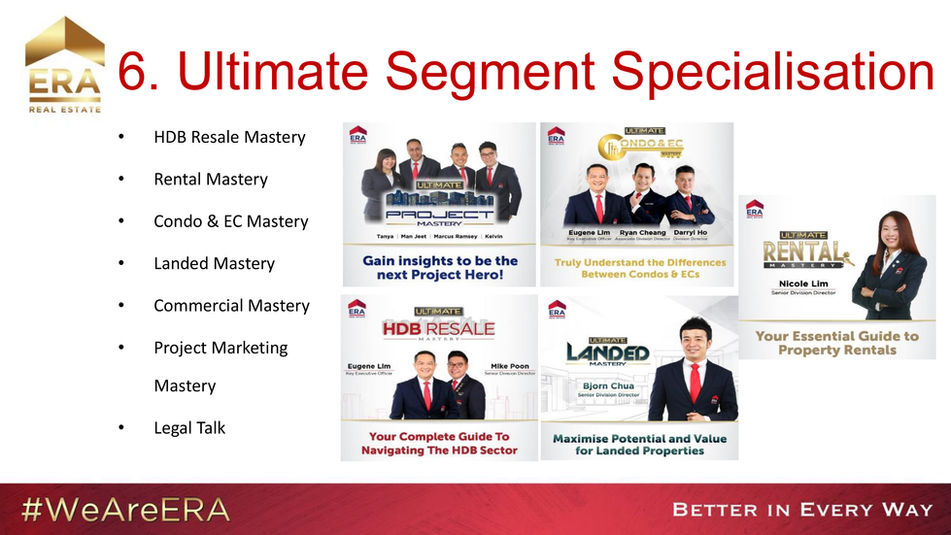 Being part of the most dynamic team, which is over 2000 agents in Singapore but also the #1 Consecutive 5x Champion Group in ERA® Singapore.